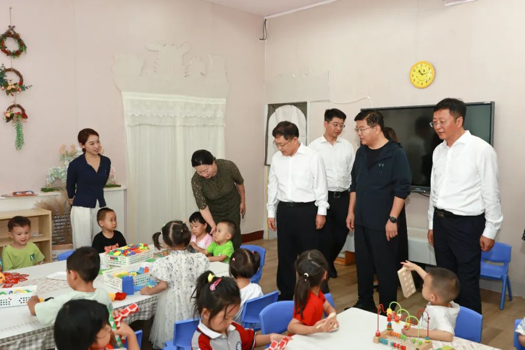 在局第一幼兒園,毛益民同志與屬地黨委政府負(fù)責(zé)同志共同為一幼新園址揭牌,參觀幼兒園環(huán)境設(shè)施,與教師親切交流。在塢城路幼兒園一分園,毛益民同志與省委黨校(山西行政學(xué)院)主持日常工作的副校(院)長宋惠民同志一起檢查幼兒園廚房、教室等設(shè)施設(shè)備,與孩子們互動(dòng)溝通,為教師送上慰問信與祝福,表達(dá)對(duì)教育工作的崇高敬意。