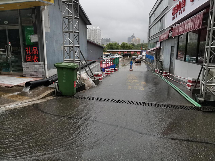 集團(tuán)物業(yè)中心對低洼處進(jìn)行搶險抽水